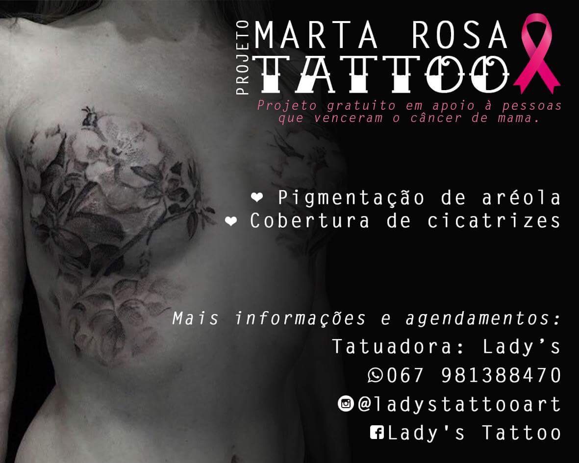 A tatuadora Patricia Ferreira, conhecida como Ladys, desenvolveu o projeto Marta Rosa, à 5 anos, e vai além de simplesmente tatuar. Sua missão é ajudar a recuperar a autoestima das mulheres que enfrentaram o câncer de mama e passaram por cirurgias que resultaram na retirada da mama ou em cicatrizes. Inspirada pelas dores vivenciadas por mulheres de sua própria família, Paty decidiu agir e devolver a confiança que o câncer roubou.